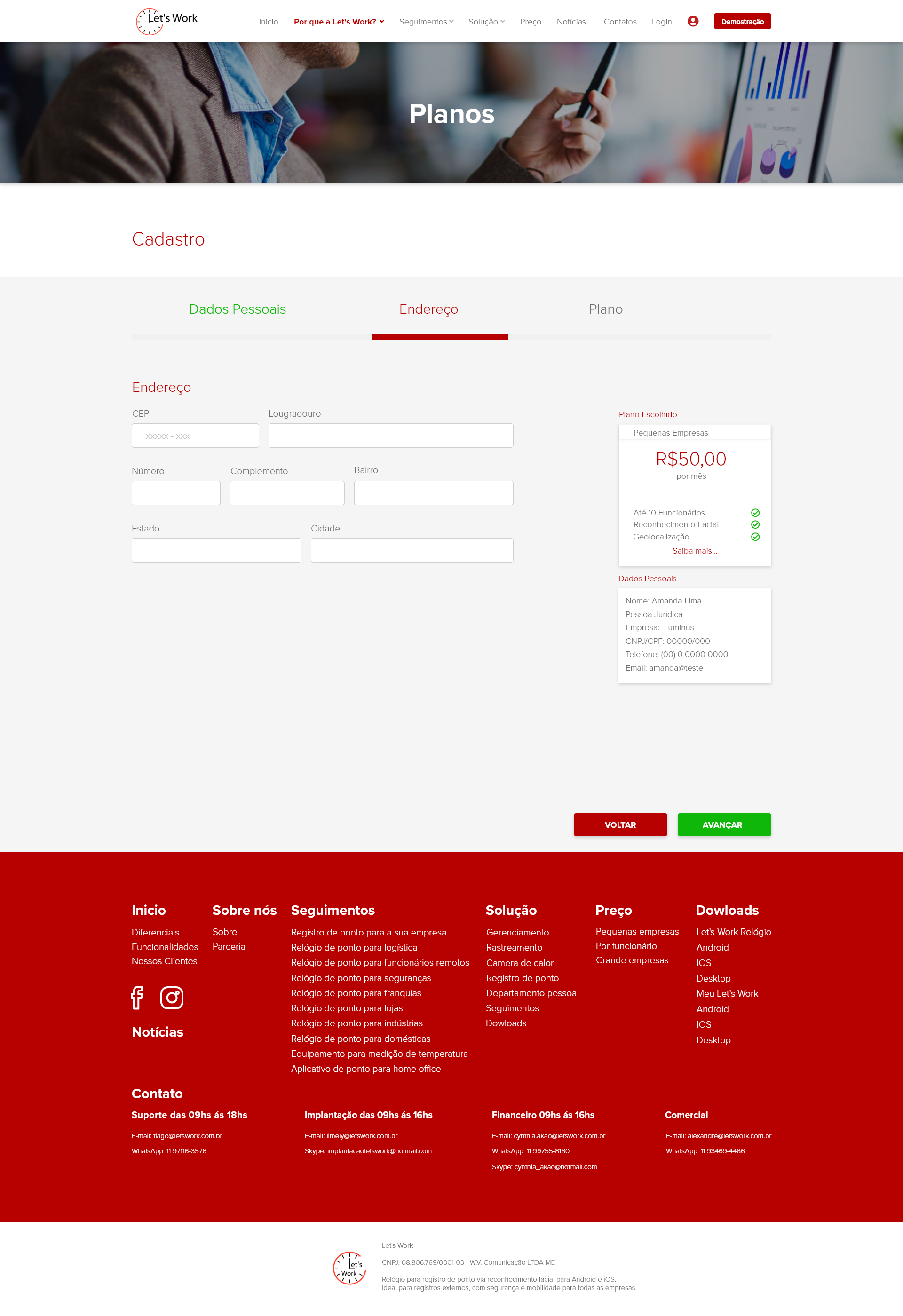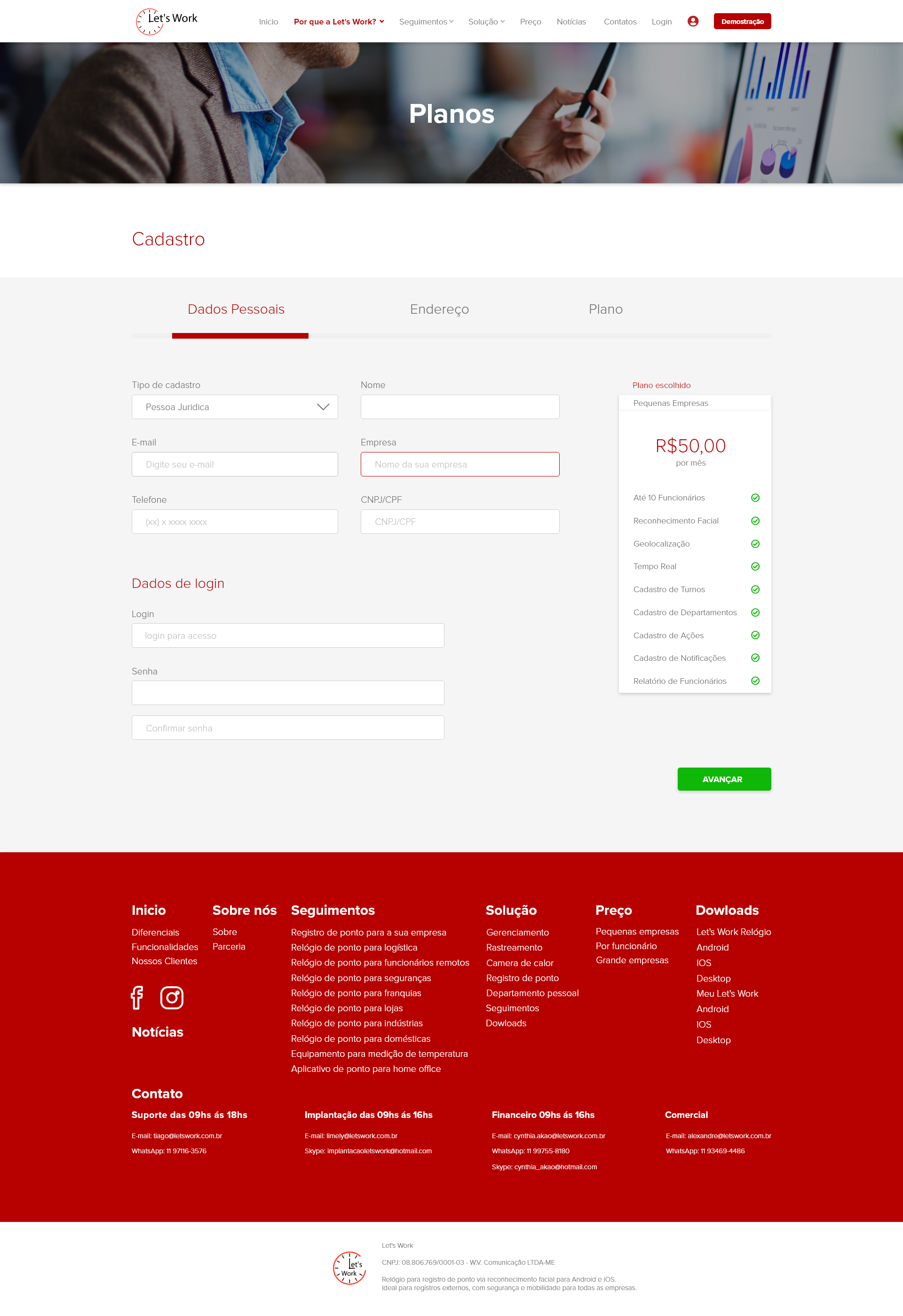 Site Institucional da empresa Let's Work.