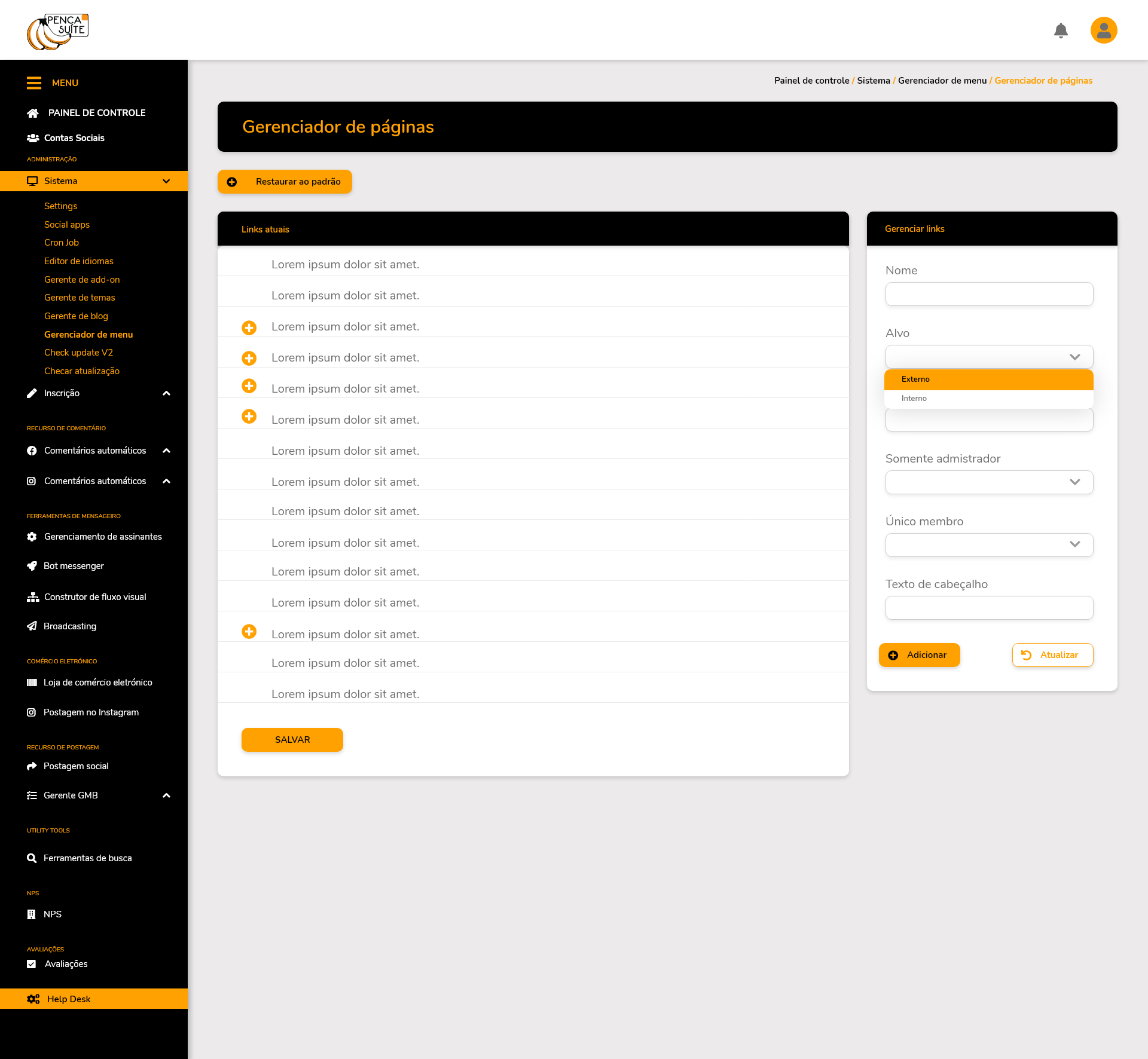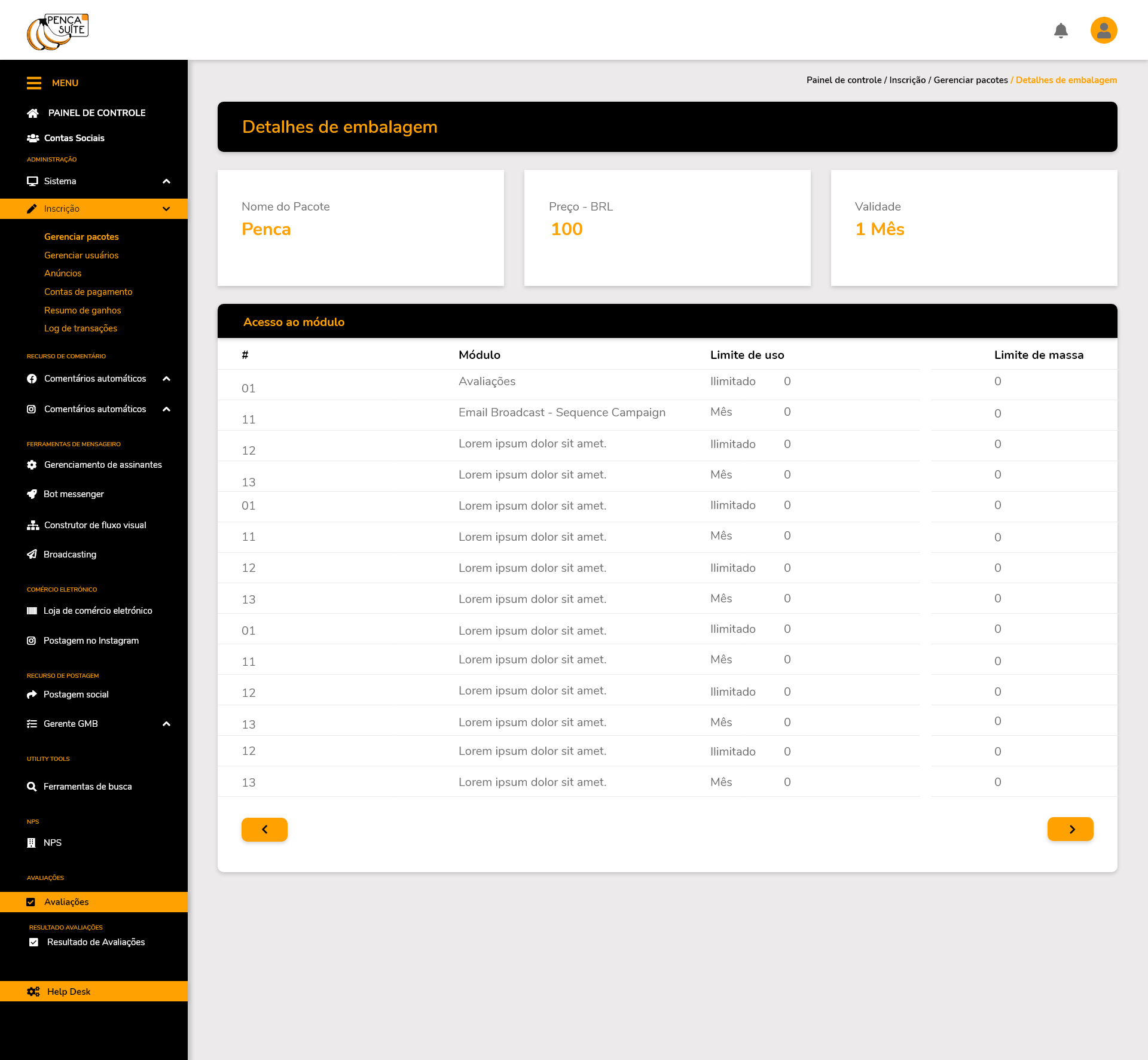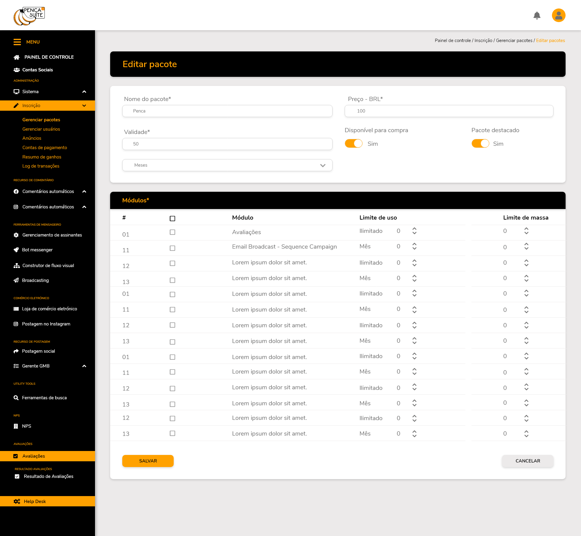 Projeto Penca Suíte rediagramação de layout para o sistema no desktop.