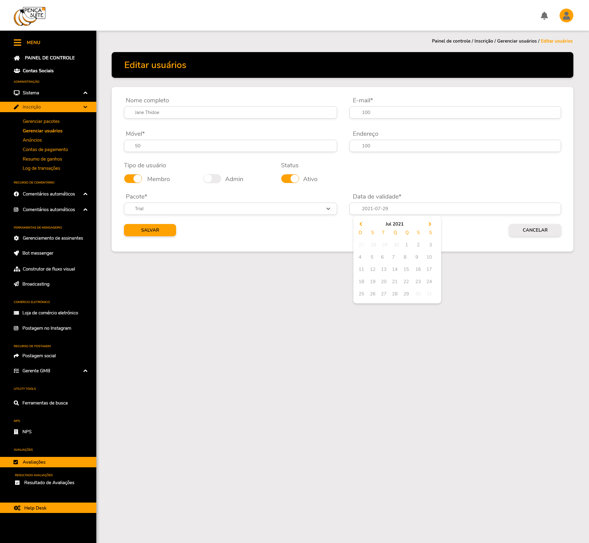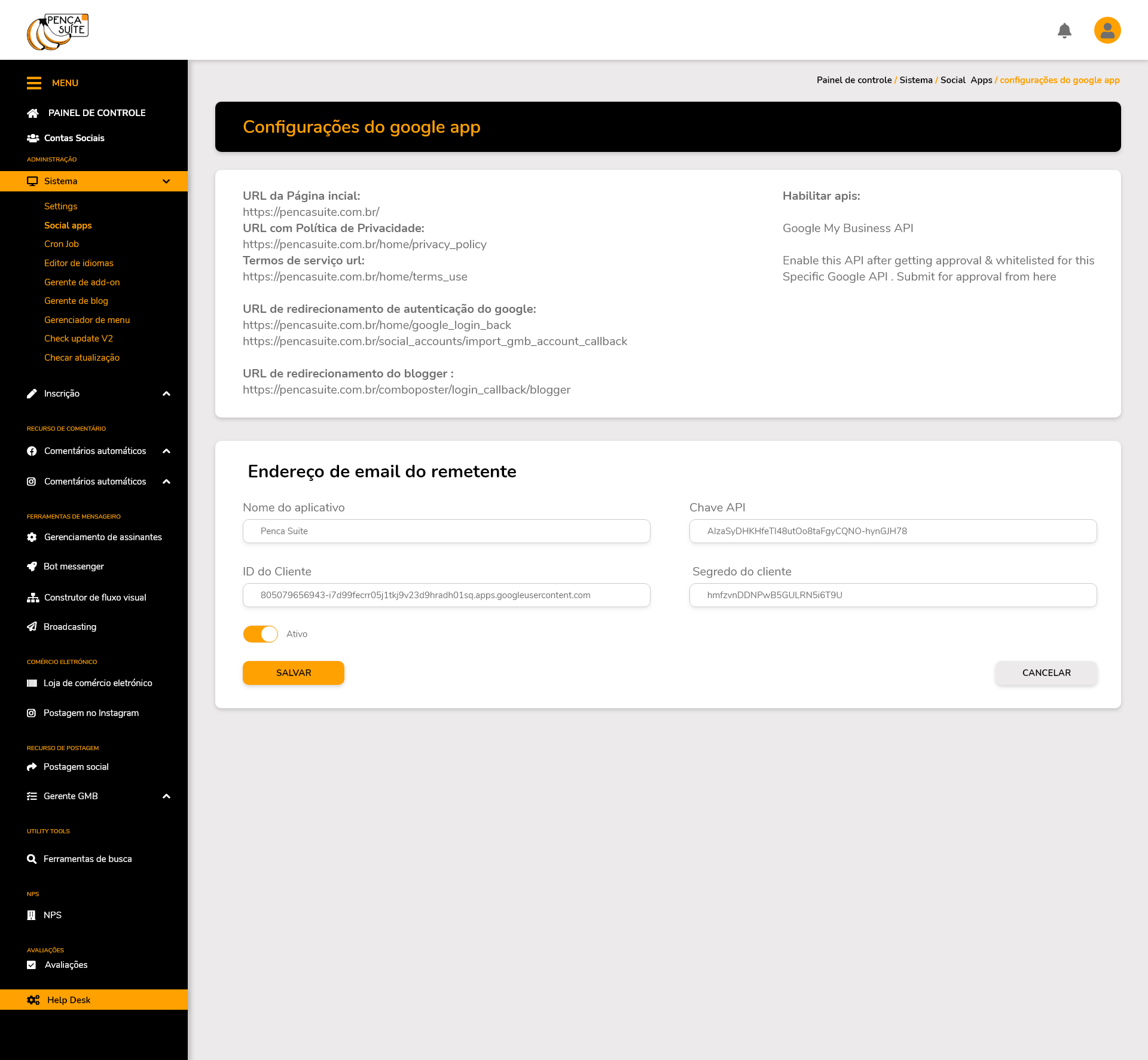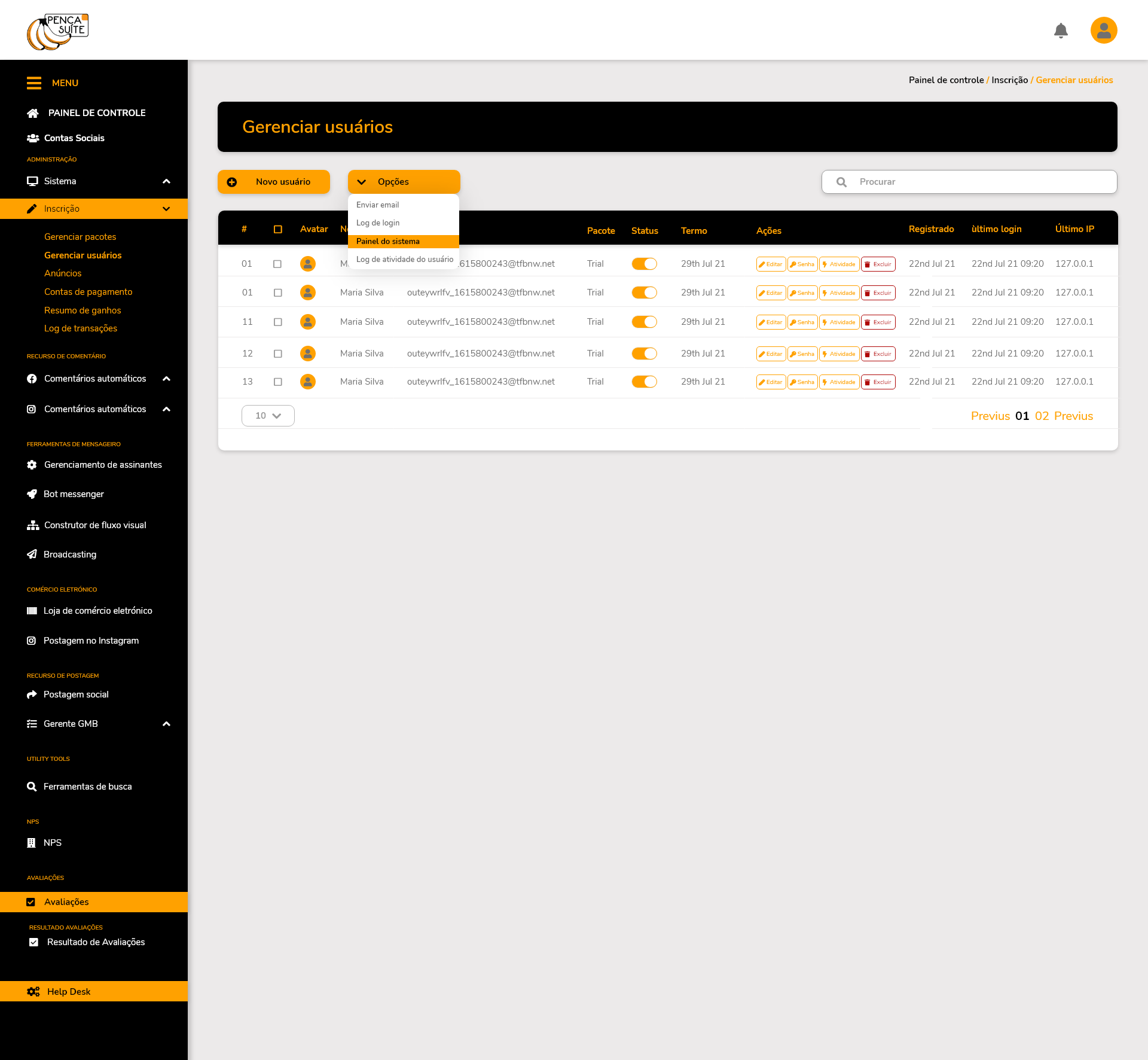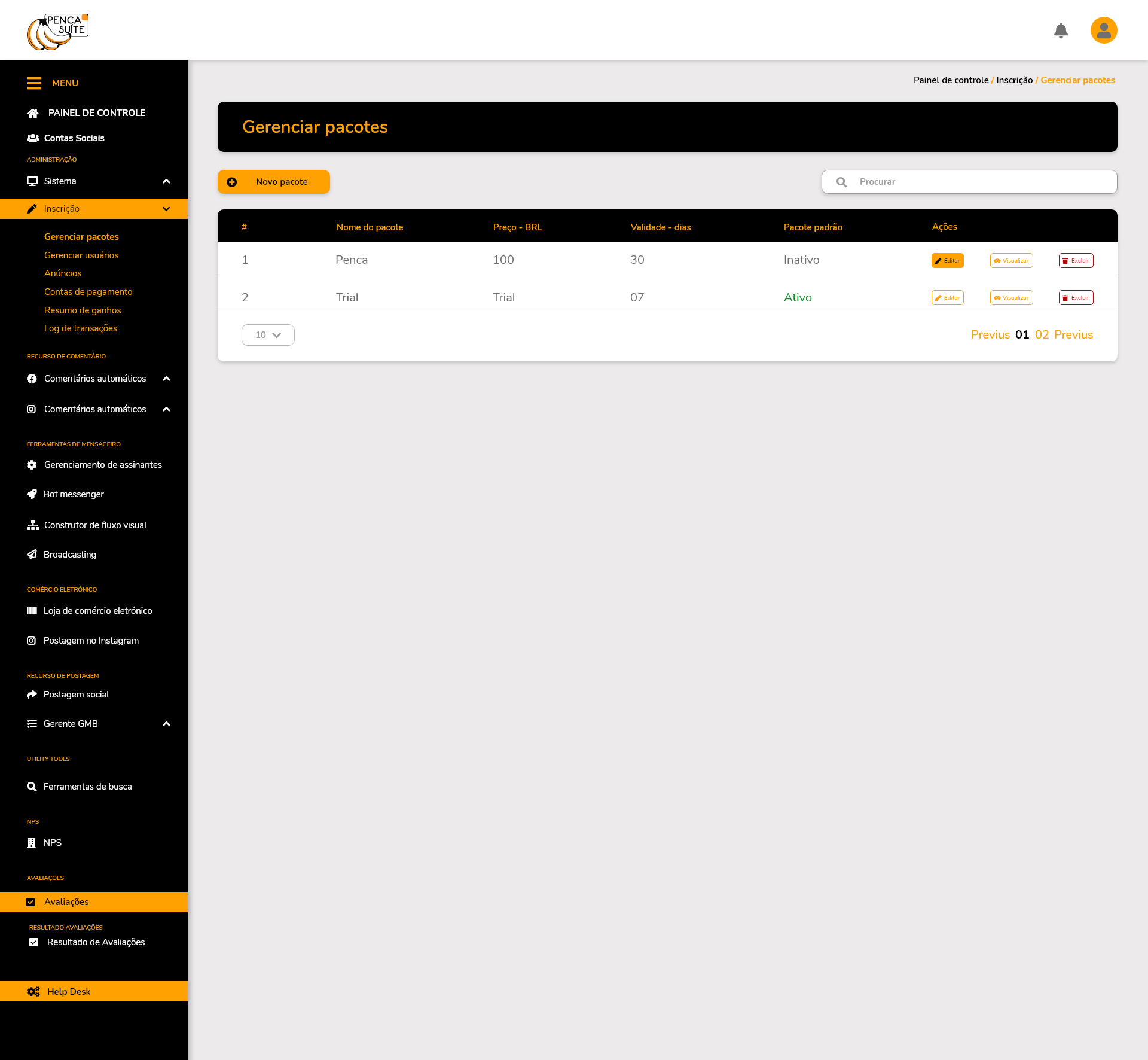 Projeto Penca Suíte rediagramação de layout para o sistema no desktop.